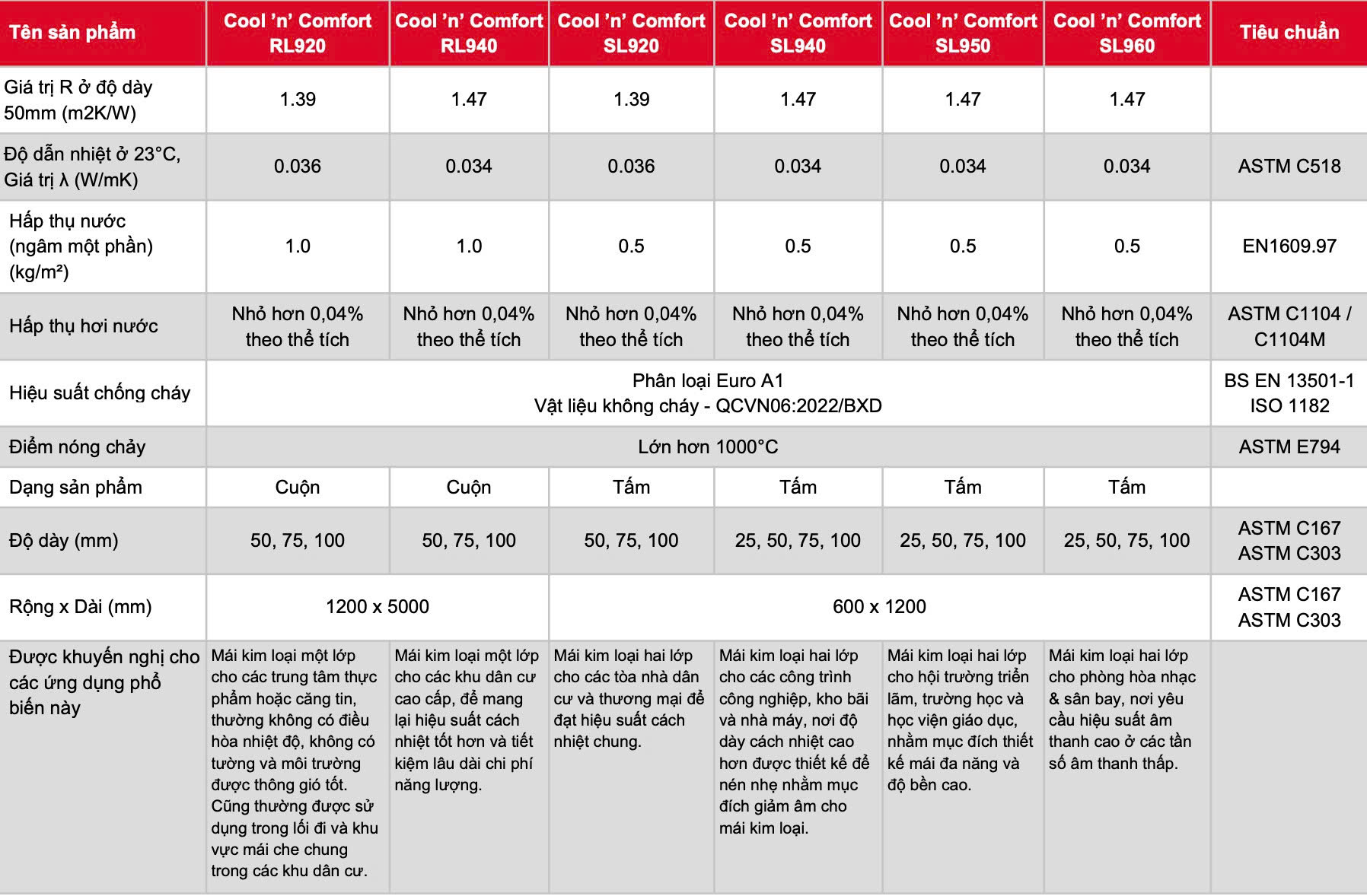 ROCKWOOL Cool ‘n’ Comfort là dòng sản phẩm cách nhiệt được thiết kế chuyên biệt cho hệ mái kim loại một hoặc hai lớp, có hoặc không có giếng trời, đáp ứng các yêu cầu về giá trị U nhằm đạt được giá trị truyền nhiệt mái (RTTV)theo tiêu chuẩn thiết kế. Sản phẩm cũng có thể được trang bị lớp phủ rào cản bức xạ, phù hợp với mọi loại mái trong các công trình thương mại và công nghiệp.