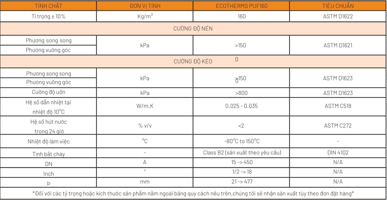 Gối đỡ foam ECOTHERMS PUF160 được sản xuất bằng cách phối trộn polyisocyanate và polyol theo tỷ lệ tối ưu, kết hợp quy trình tạo bọt đặc biệt giúp gia tăng tỉ trọng và độ bền của sản phẩm. Đây là bộ phận quan trọng trong các hệ thống đường ống công nghiệp, vừa đảm nhiệm chức năng cách nhiệt vừa hỗ trợ cố định đường ống tại các vị trí chịu tải.